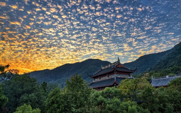 古意【宋】明教契嵩禅师风吹一点云,散漫为春雨。洒予松柏林,青葱枝可取。持此岁寒操,手中空楚楚。幽谷无人来,日暮意谁与?这既是一首古远幽清的隐居感怀诗,又是一幅鲜活的写照图,凝练自然,情景交融。诗名“古意”实为禅意,宗门中常有“古涧寒潭”或“古道”之说,故全诗景语,皆可入禅。“风吹一点云,散漫为春雨”,春风吹来一片云朵,散落成稀疏的小雨,诸法因缘而起,此有则彼有,此灭则彼灭。“洒予松柏林,青葱枝可取”,春雨细洒在松枝柏叶上,顿然变得苍翠欲滴,体现着常住真心的随缘变现,无一不呈露着自性的奥秘。这正是“春光重漏泄,有口不须陈”的现量意境,“好个真消息,凭君仔细看”。“持此岁寒操,手中空楚楚”,禅师居