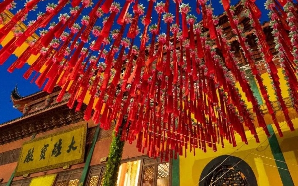 ▲杭州灵隐寺大雄宝殿帝释天像忉利天主 释提桓因元旦阎浮鉴下民 善恶自分明誓愿宏深 拥护佛法僧南无护法藏菩萨摩诃萨农历正月初九,恭迎佛教护法帝释天的诞辰,敬请广行吃素、供花、上香、供灯、念佛、诵经、持戒、放生等善事,祈求三宝加持、诸天护佑,新的一年风调雨顺、五谷丰登、阖家安康、善愿皆成!帝释天是谁? 帝释天,全名为释提桓因陀罗,简称因陀罗,意译为能天帝,他是欲界的忉利天主,也是佛教的护法神。按佛经所描述的世界,我们所住的世界中心有一座须弥山,帝释天就住在须弥山顶的善见城,统领其余诸天。须弥山四周各有八天,加上中央帝释天,合为三十三天,此即欲界六天中的忉利天。忉利天以人间百年为一日,寿长一千岁,其