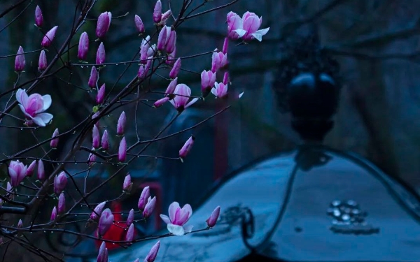辛夷坞【唐】王维木末芙蓉花,山中发红萼。涧户寂无人,纷纷来且落。在寂寞无人的深涧中,辛夷花默默开放。无生之喜,无灭之哀,纯然自足,不待人识。完全是诗人见性自足,任运自然地心境写照。释尊菩提树下证得无上正等正觉,第一句便指出“奇哉!奇哉!一切众生皆有如来智慧德相,只因妄想执着,不能证得”。自性本来一切具足,任他开也罢,落也罢,无人知也好,有人识也好,总不碍“知足常乐”。诗人通过禅修,已悟此理,通诗皆是自性亲切流露。更为高妙的是不用一点禅语佛句,却能将禅心淋漓表达。短短二十字,将用千言万语无法表述清晰的禅境,极其简捷地全然展开,让每个读者都能随自己的体会感觉到绝对自在,飘然超迈得寂乐境界,顿觉“身