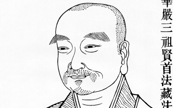 来必有因 燃指立誓游毗卢海 穷法界致口门放光 神京震地伟哉吾师 垂范万世华严三祖贤首国师(643—712),讳法藏,字贤首,帝锡别号国一法师。大师俗姓康氏,其祖先为康居国丞相,祖父之时归化中国。父名康谧,唐朝赠左卫中郎将。母梦吞日光而孕,法藏出生时为唐太宗贞观十七年(643)十一月初二日。十六岁(658)时,于阿育王寺舍利塔前燃一指供佛。翌年显庆四年(659),大师志锐择师,遍谒都邑缁英未果,遂辞亲求法于太白山,云水生涯多年,敷阅方等经典。后闻亲疾,出谷入京。时智俨和尚讲《华严经》于云华寺,遂投其门下为弟子。然而其时法藏大师因俗事未了,仍为居士之身。总章元年(668),智俨和尚临终,嘱托道成等